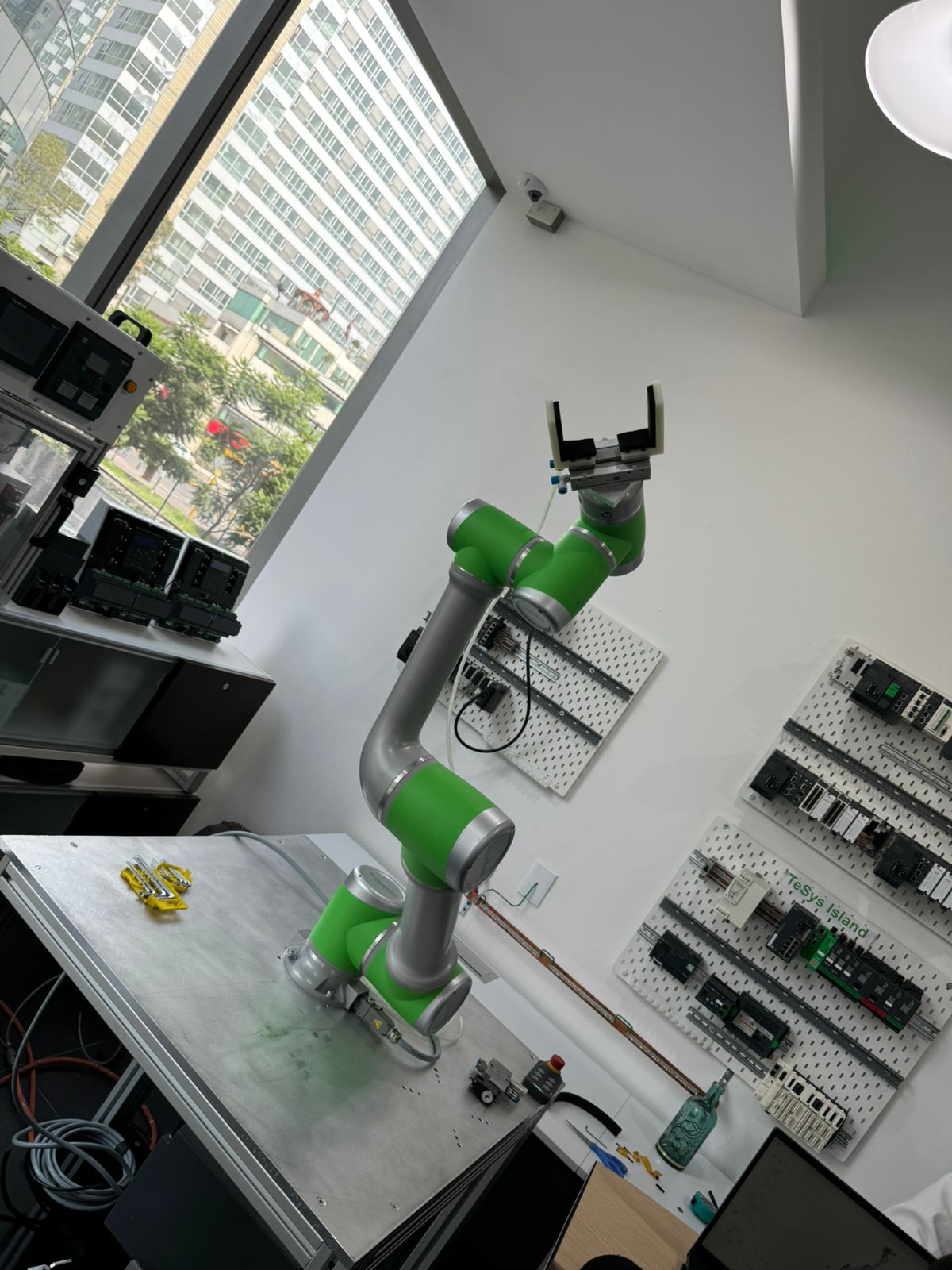 Utilizados en fábricas y plantas de producción para realizar tareas repetitivas como ensamblaje, soldadura, y manejo de materiales. En este caso, diseñamos y fabricamos herramental (Grippers), para el manejo de materiales como botellas. De igual forma, somos especialistas en programación de robots colaborativos: cobot Schneider.